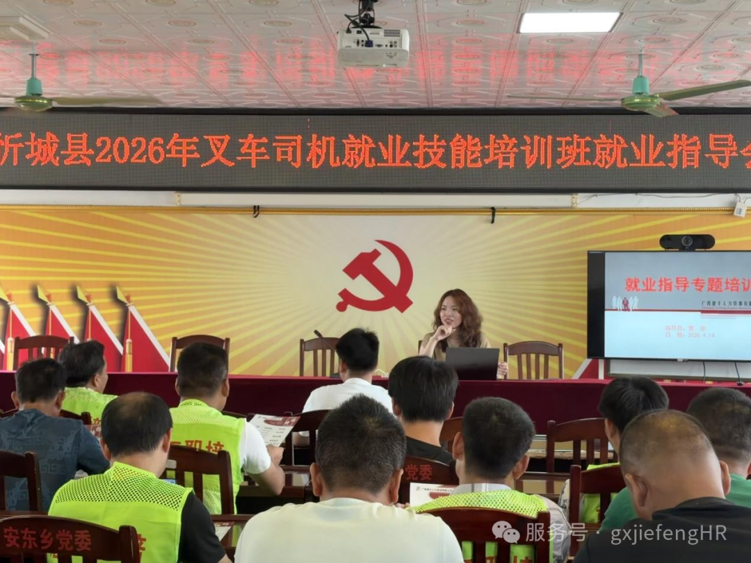 为扎实推进技能培训+就业服务精准衔接,切实提升忻城县叉车司机的就业竞争力,2026年4月14日,广西捷丰人力资源有限公司走进忻城县